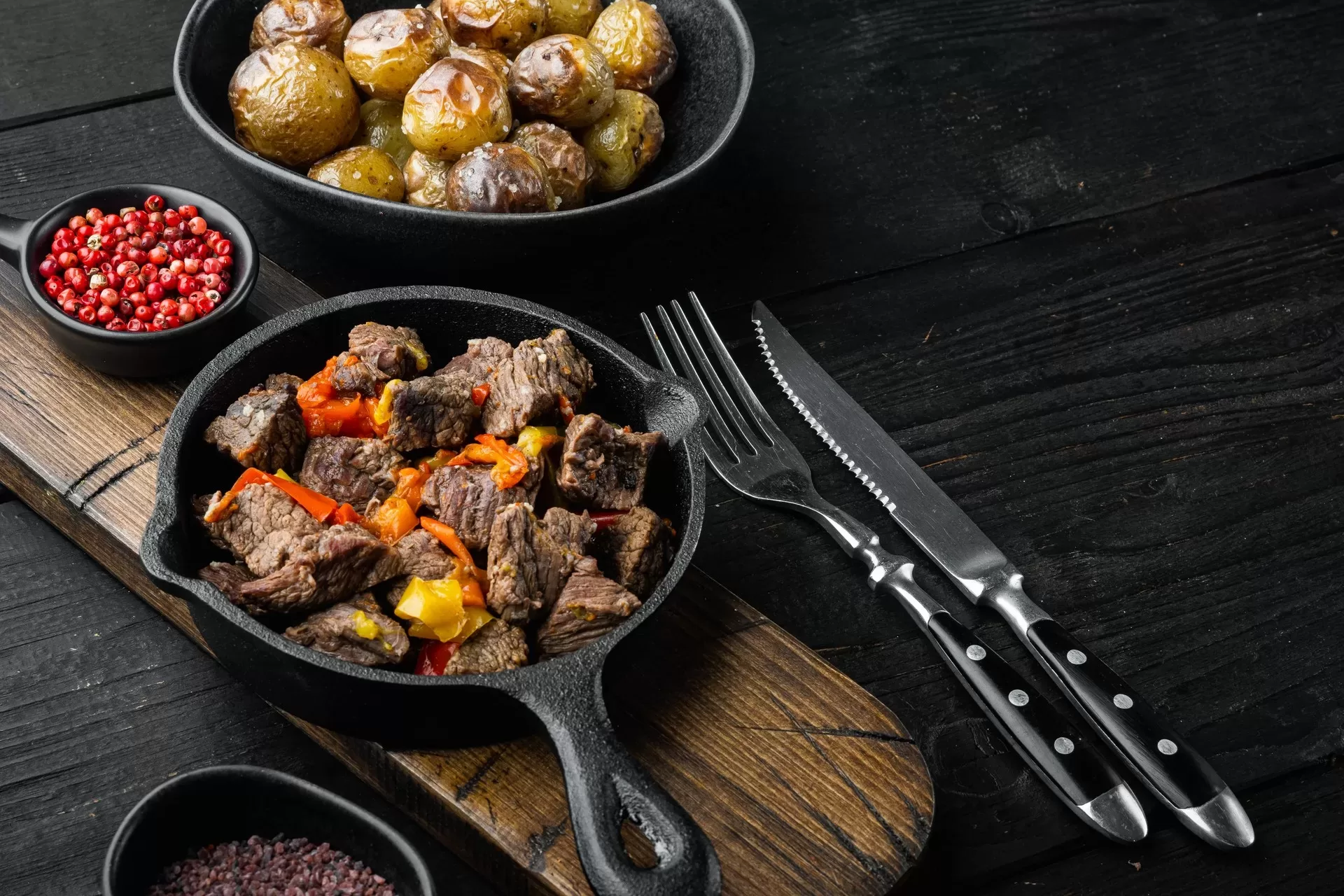 Produsele din fontă sunt sănătoase pentru gătit, durabile și avantajoase pe termen lung. Friptura și ardei kapia s-au gătit foarte bine.