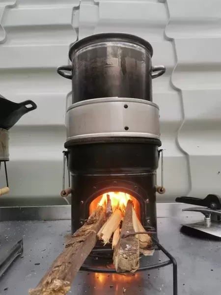 Recuperatorul de Căldură (Pot Skirt sau Pot Ring) este un accesoriu foarte util cand gătim pe soba rachetă. Acesta protejează flacăra de vânt și concentrează căldura focului către fundul și pereții vasului. Se montează pe vasul de gătit și are acop concentrarea întregii călduri generate de ardere spre fundul și pereții oalei, cratitei sau ceaunului tau.