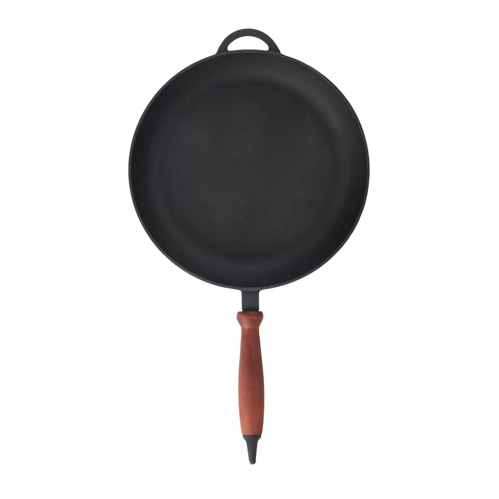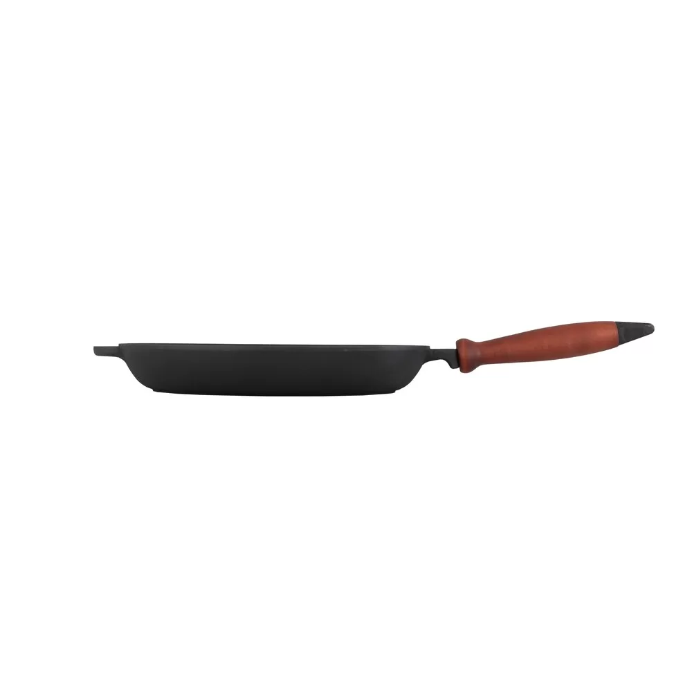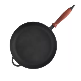 Mânerul de lemn, plăcut la atingere, oferă o manevrabilitate crescută tigăii de fontă. Dacă considerați că vasul este prea greu de mutat cu o singură mână, mânerul de lemn vă va permite să îl manevrați cu ambele mâini, simultan. Mai mult decât atât, mânerul de lemn detașabil reușește să reducă dimensiunea tigăii, pentru a intra în orice cuptor.